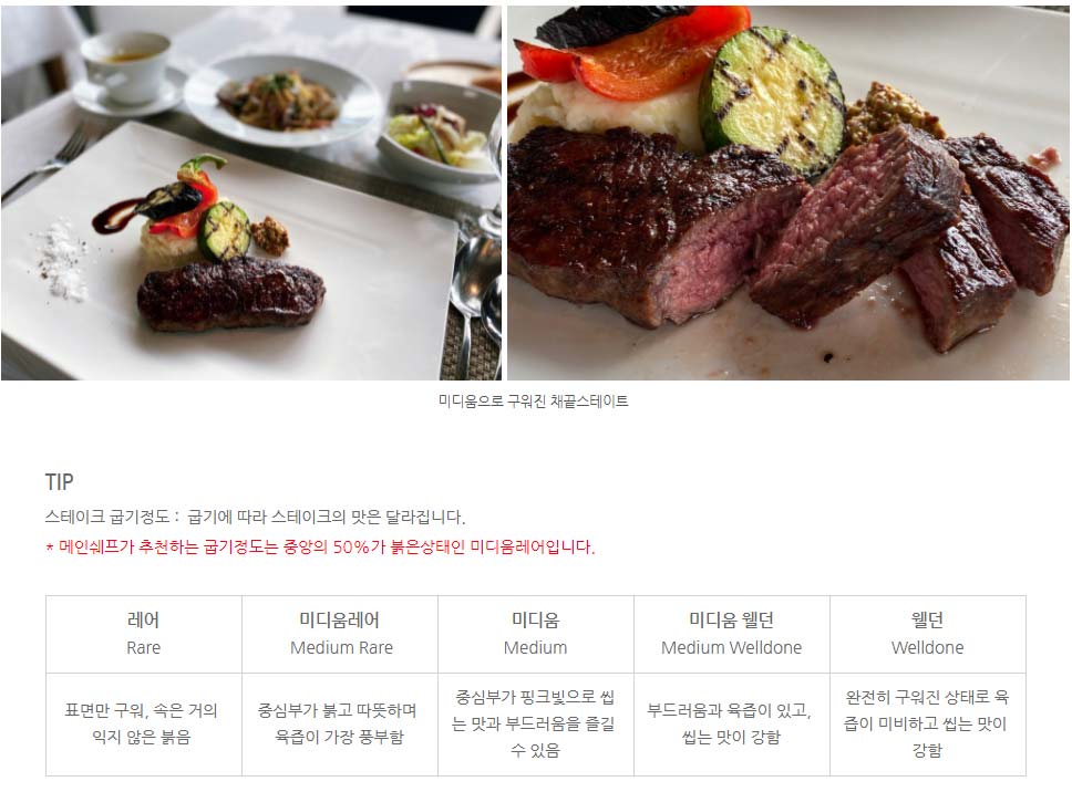 엘르베 레스토랑 추천메뉴 - 스테이크B 코스요리