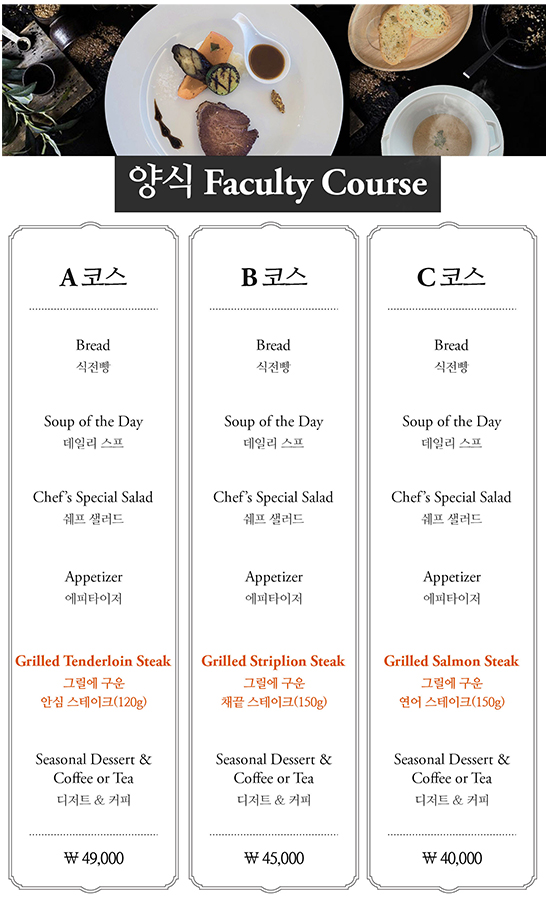 교수회관 양식당 석식이용에 도움이 되시길 바랍니다.