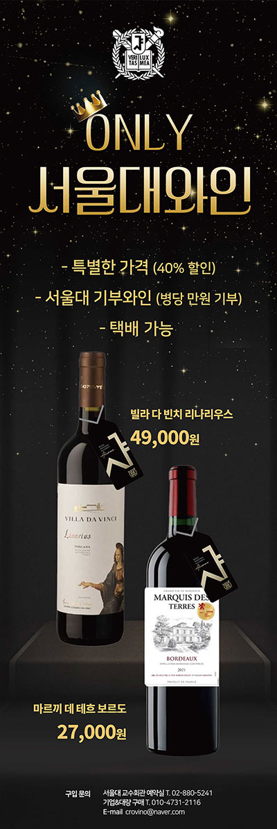 2025.08.20서울대만을 위해 특별한 가격으로 제공하는 서울대 와인(SNU 와인)을 만나보세요.